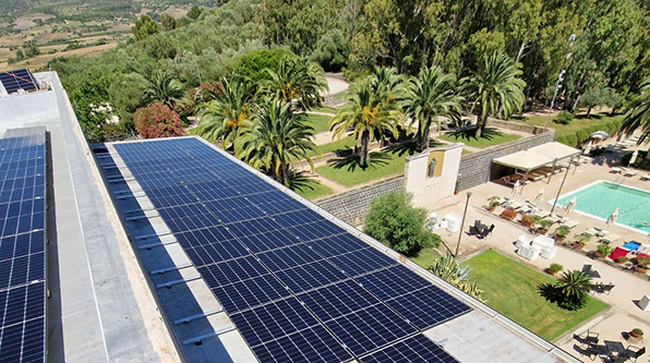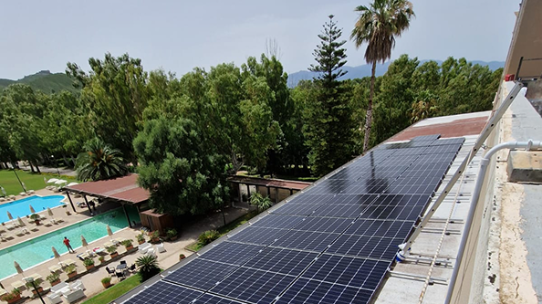 Una delle strutture alberghiere più rappresentative della Sardegna, il T-Hotel è sinonimo di accoglienza, innovazione e design. L’impianto, costituito da moduli ALEO SOLAR e JINKO SOLAR e inverter SOLAREDGE, rientra in un ampio progetto di efficientamento energetico che ha coinvolto diverse aree di proprietà dell’Hotel, con l’obiettivo di ridurre i consumi e promuovere un modello di ospitalità sostenibile. La sezione di impianto realizzata su pensiline si integra perfettamente con l’estetica e la funzionalità dell’area parcheggio.